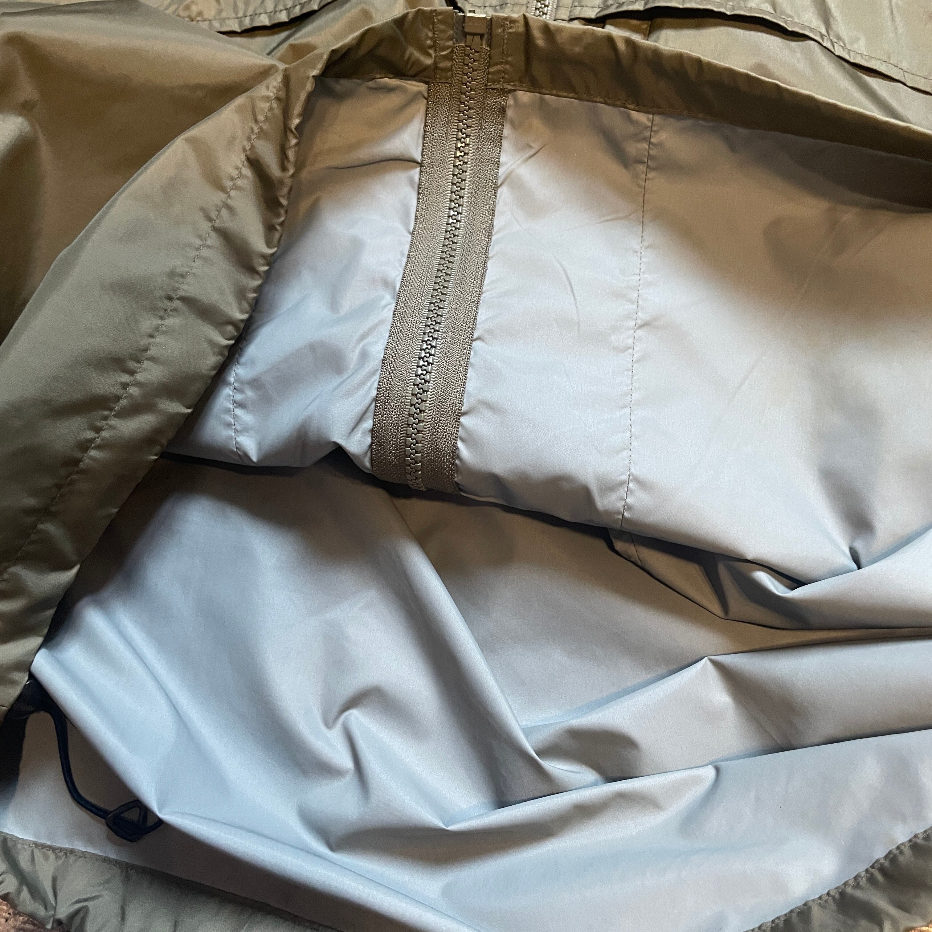 出し入れ可能なフードと袖、裾はドローコードで調節可能とギミックも多い1着。