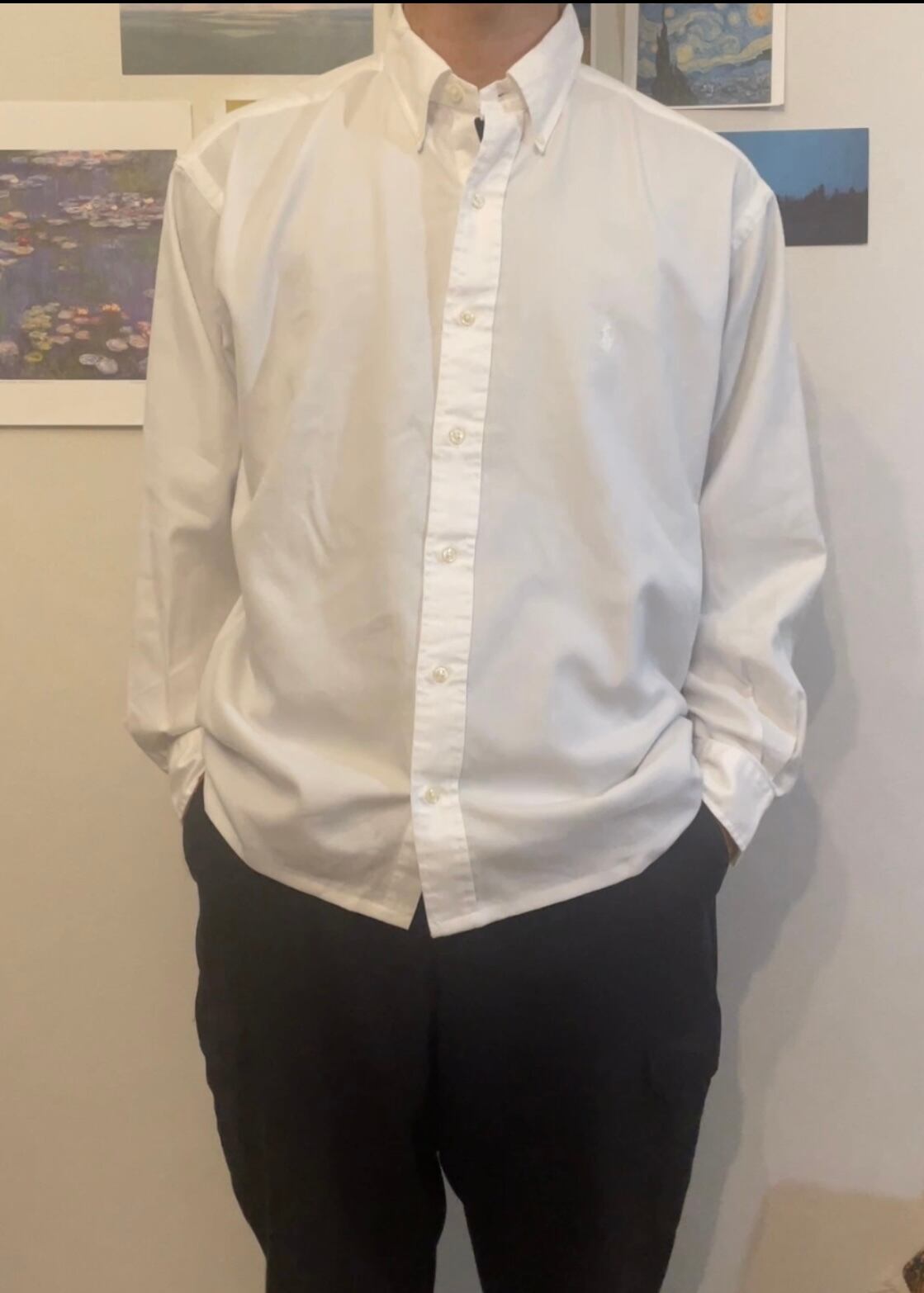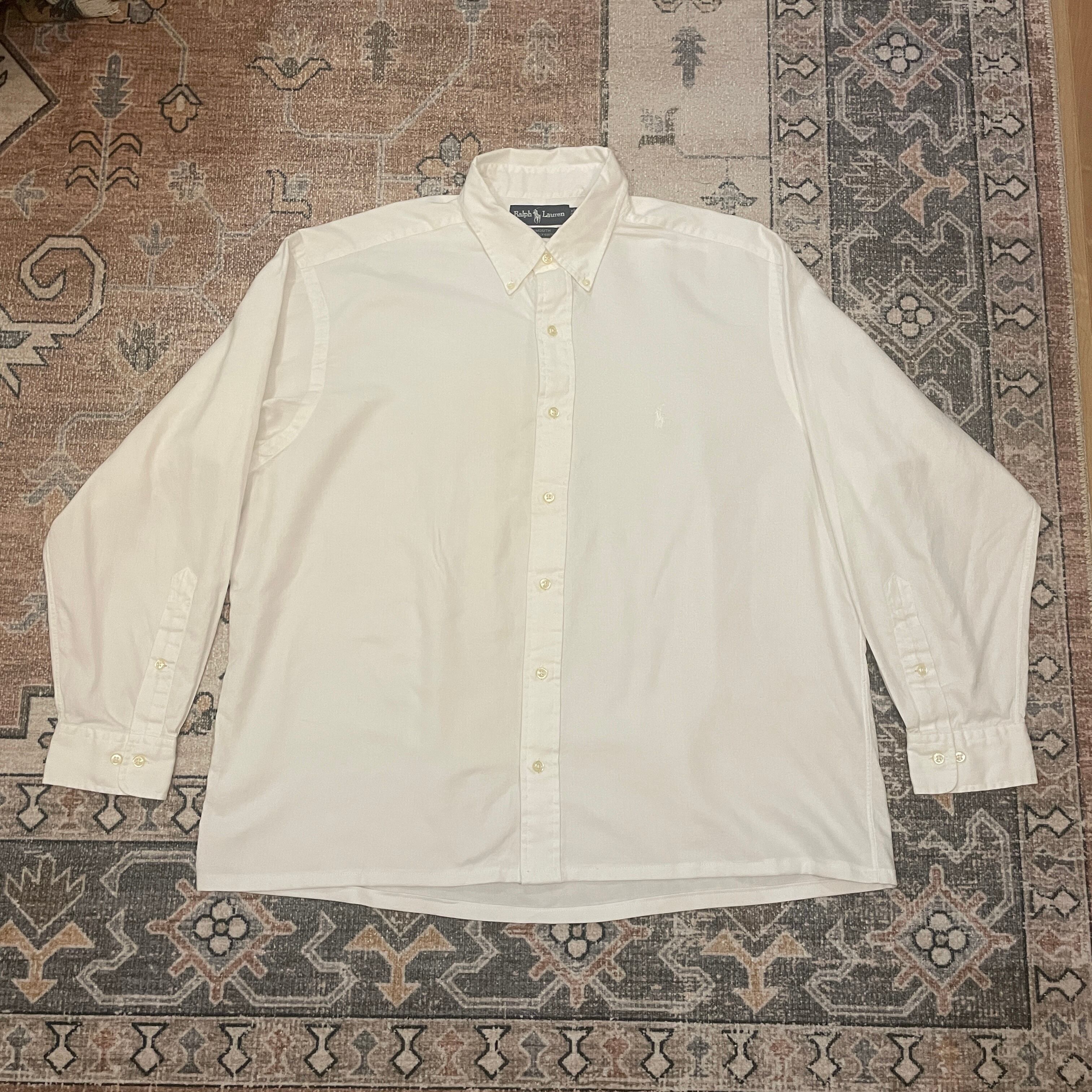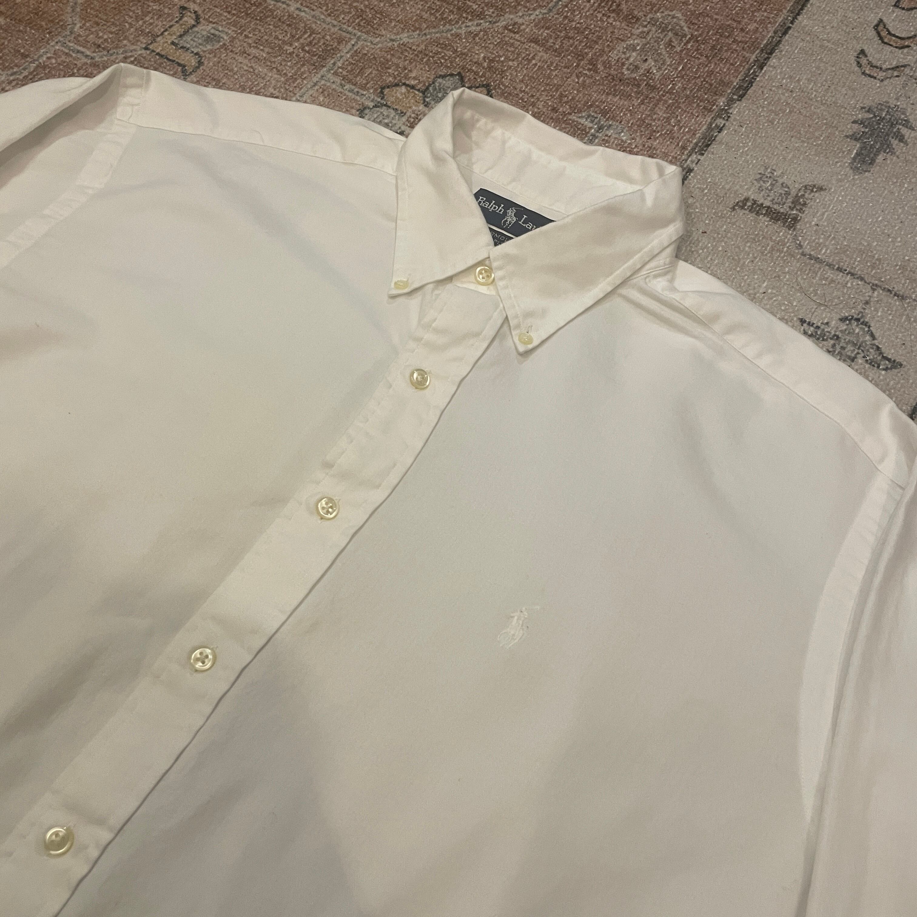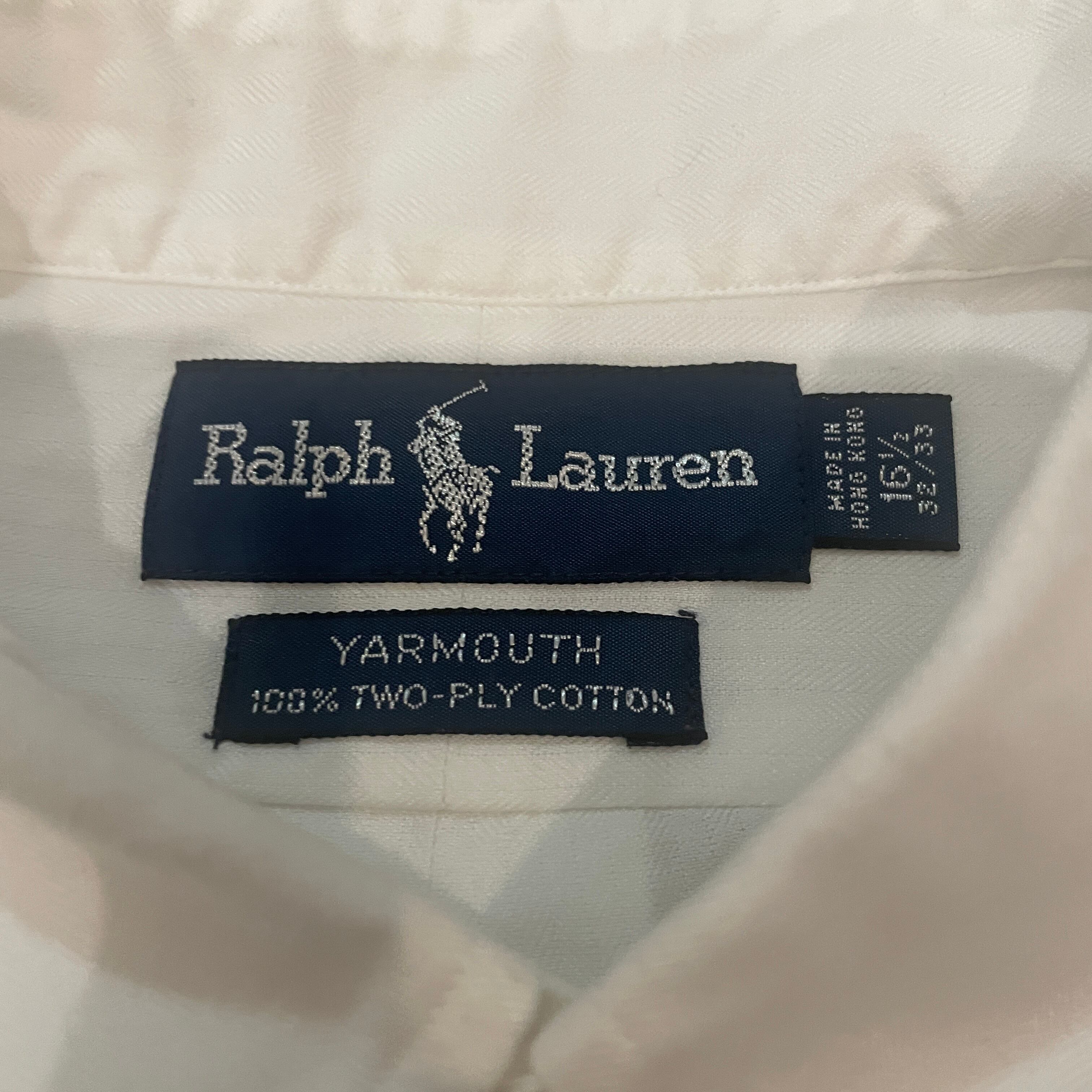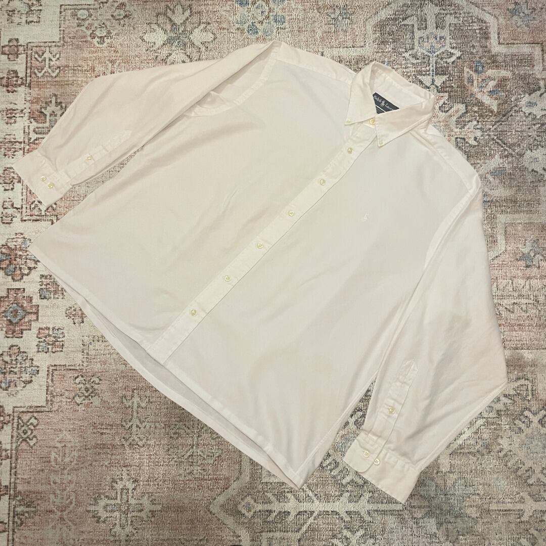 ラルフの白シャツ。同色ポニー刺?の隠れポロです。