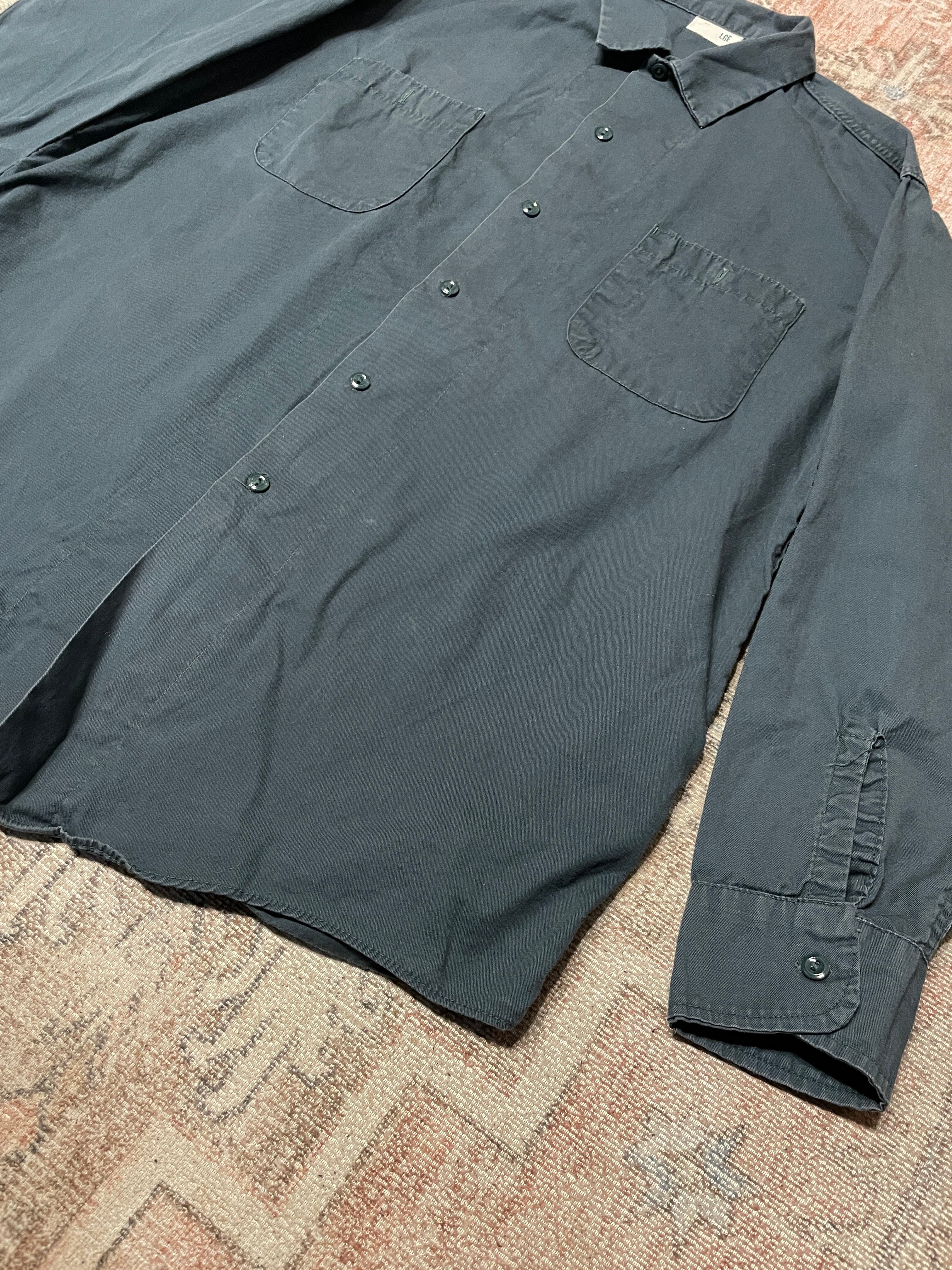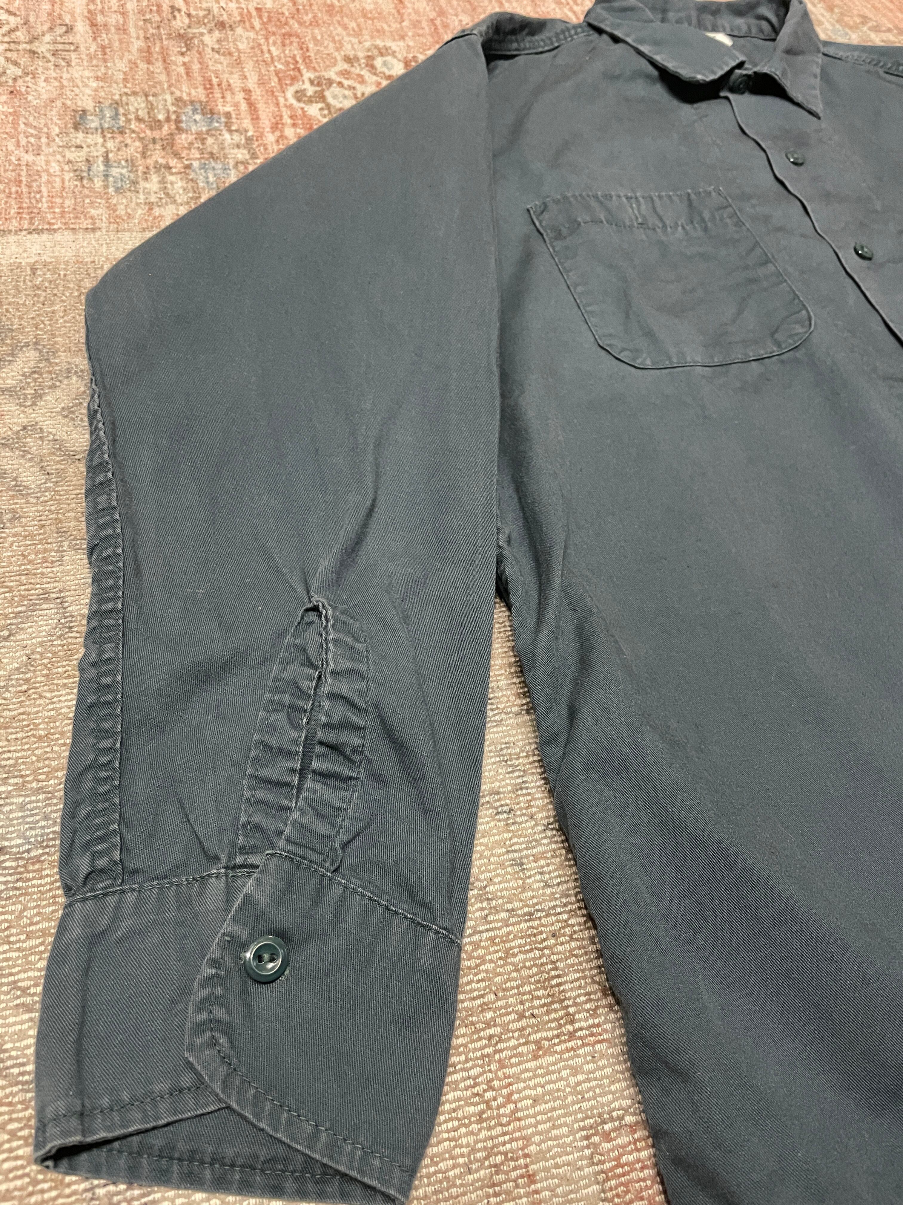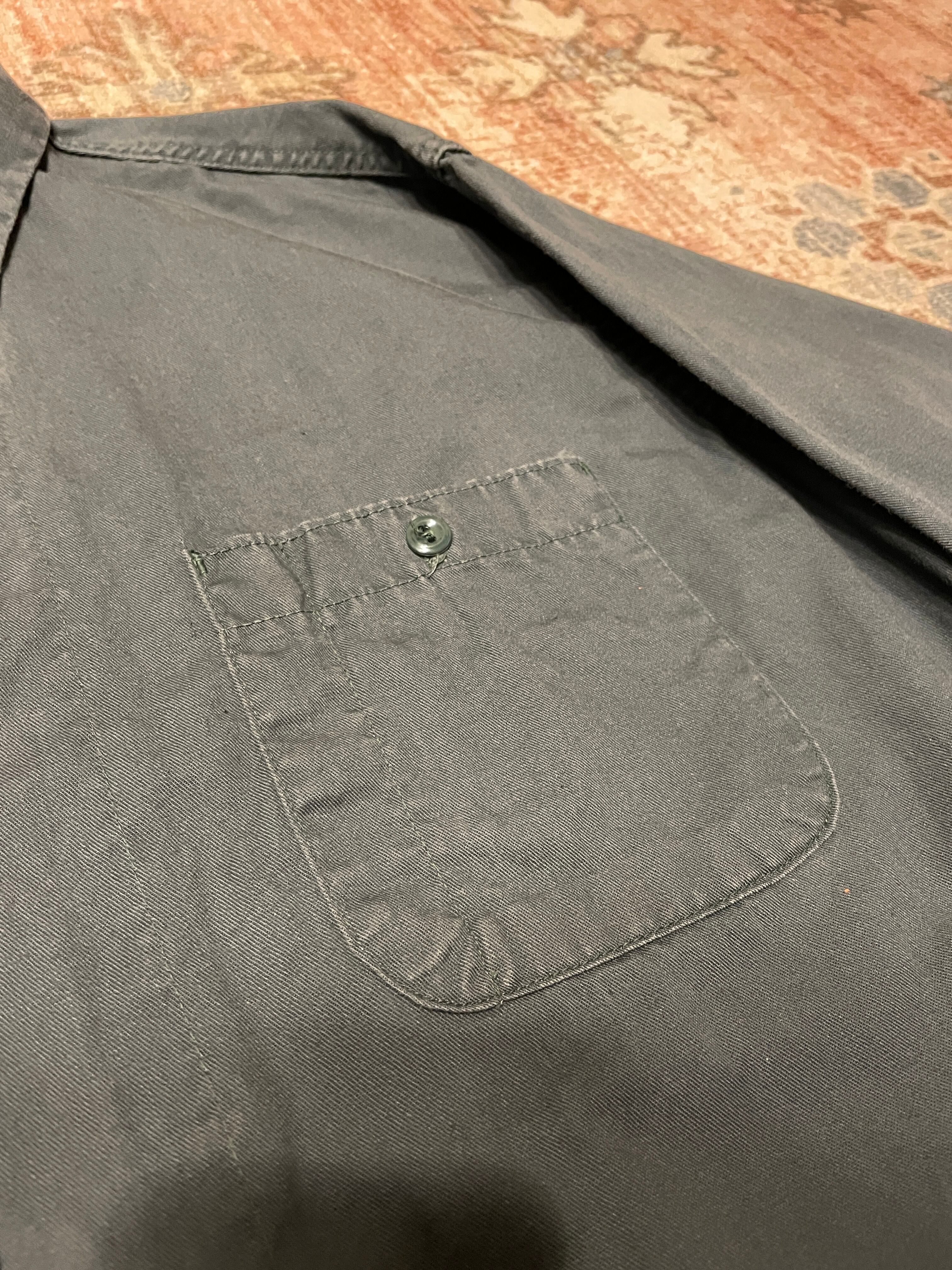 フェードしたグリーンが美しい、ワークシャツ。リアルワーク古着の1点ものです。
