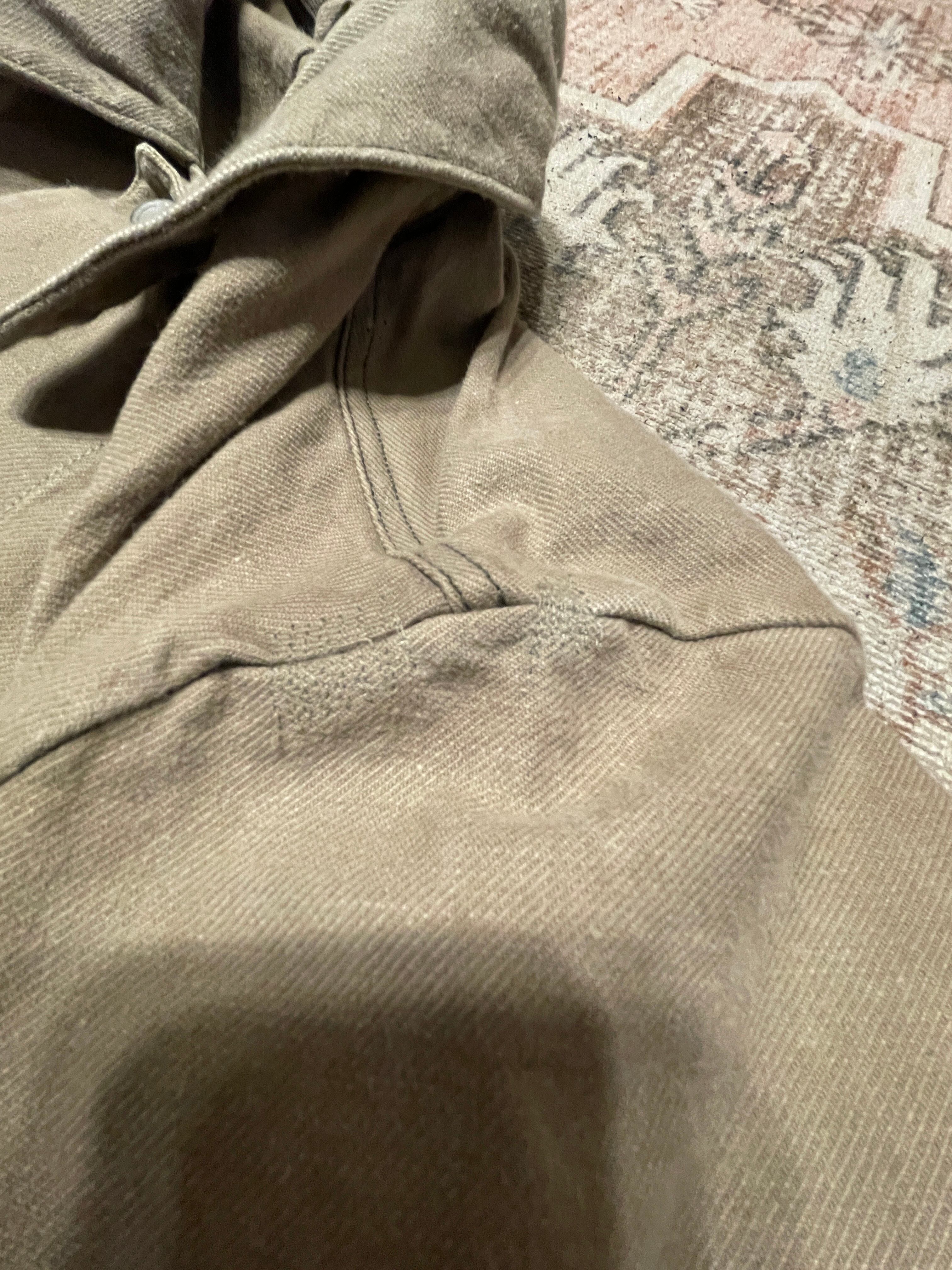 穴あき、リペア跡、シミ、色ムラなどが見られますが、古着ならではの無骨な美しさがあります。