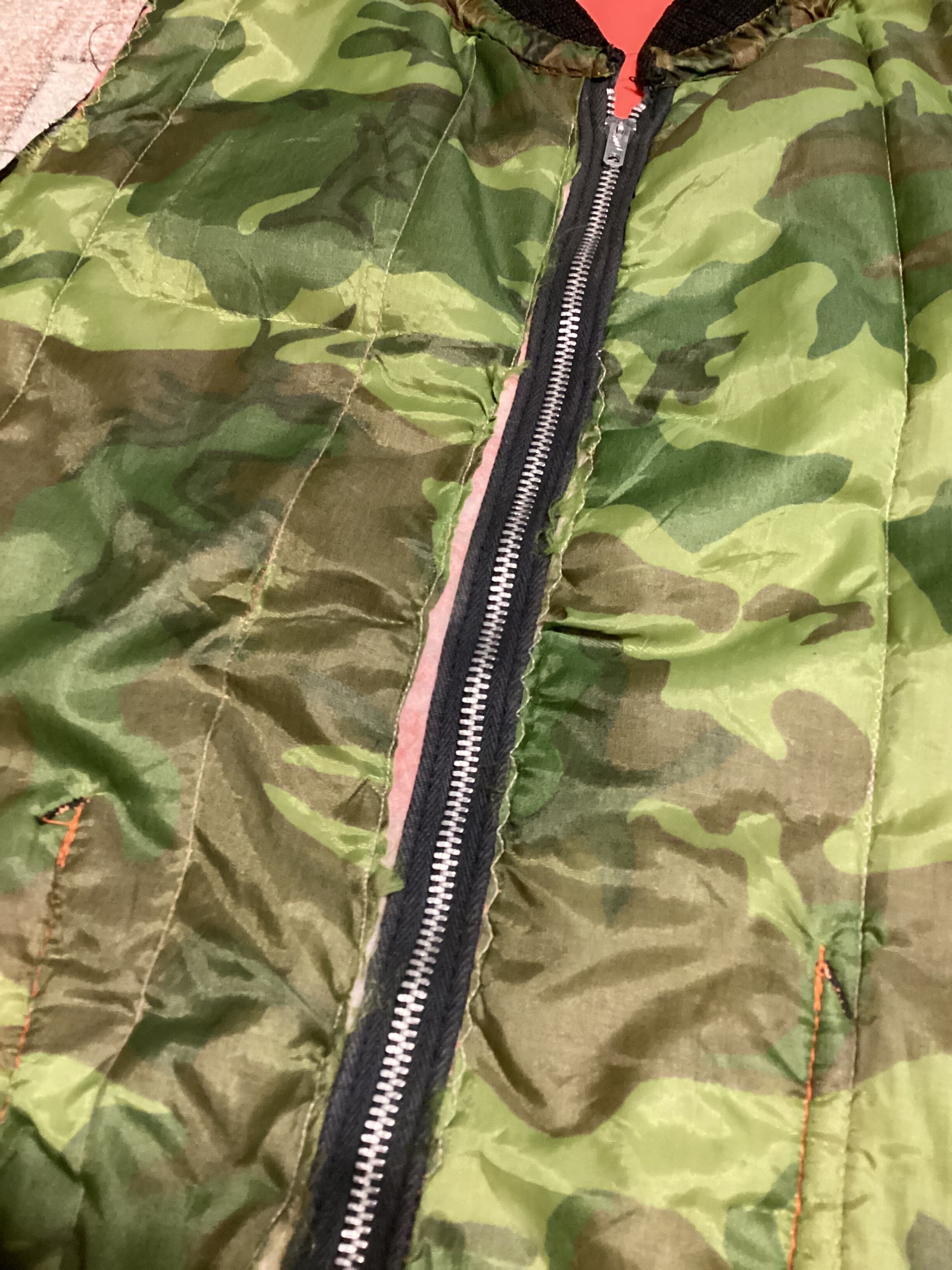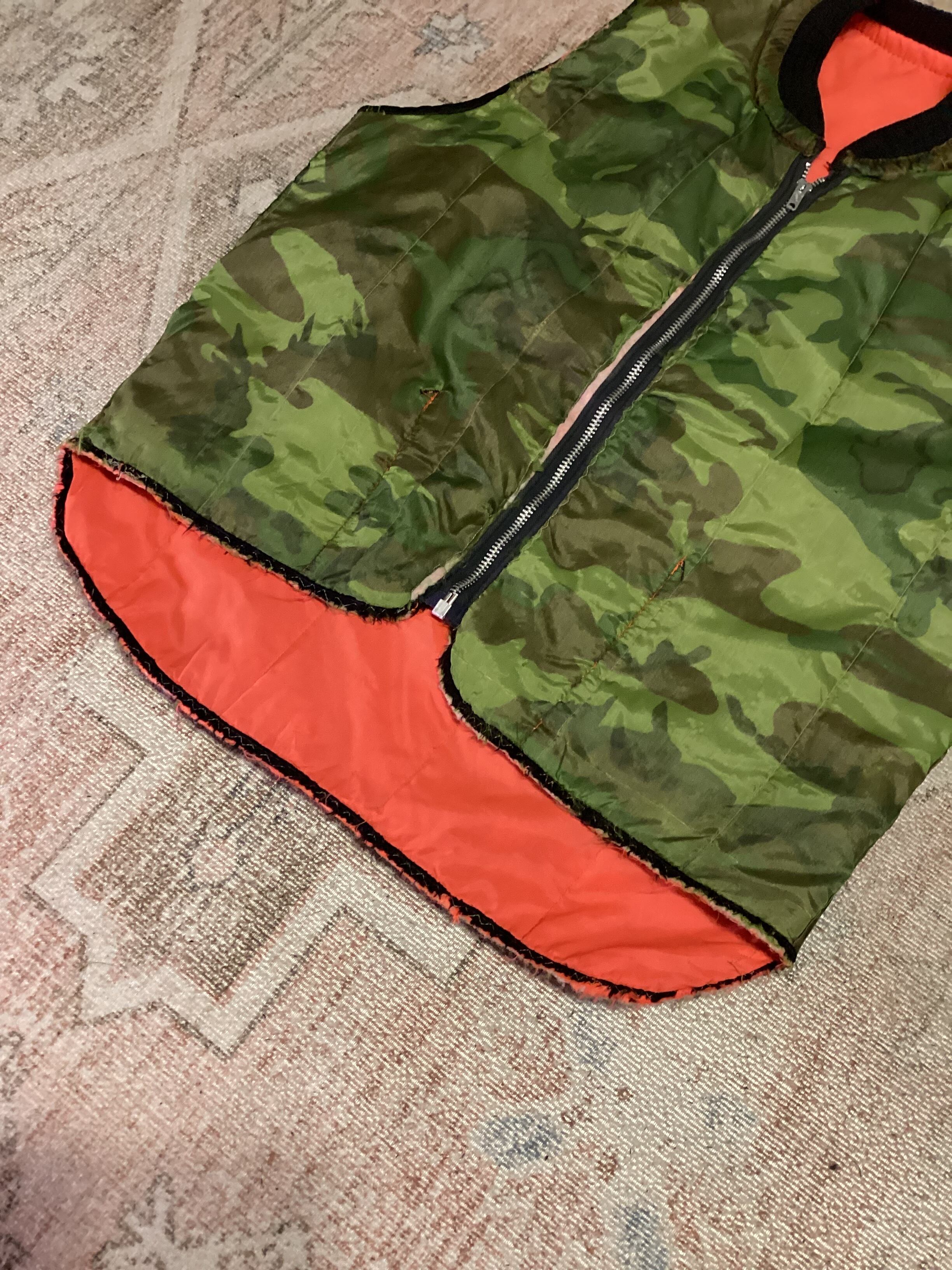 グリーン系のカモ柄と、ハンティングウェアでよく使われるブレイズオレンジのリバーシブル仕様。