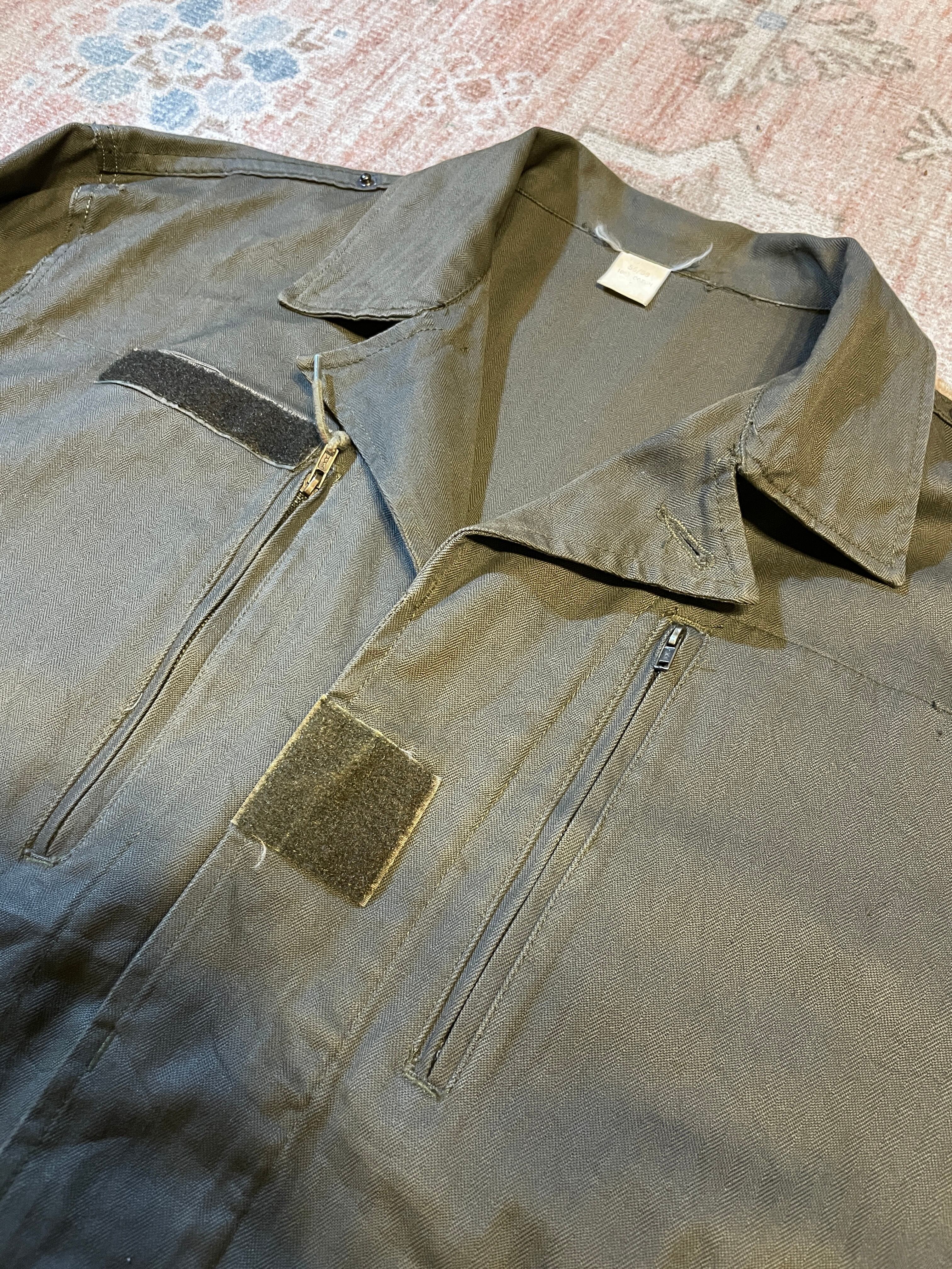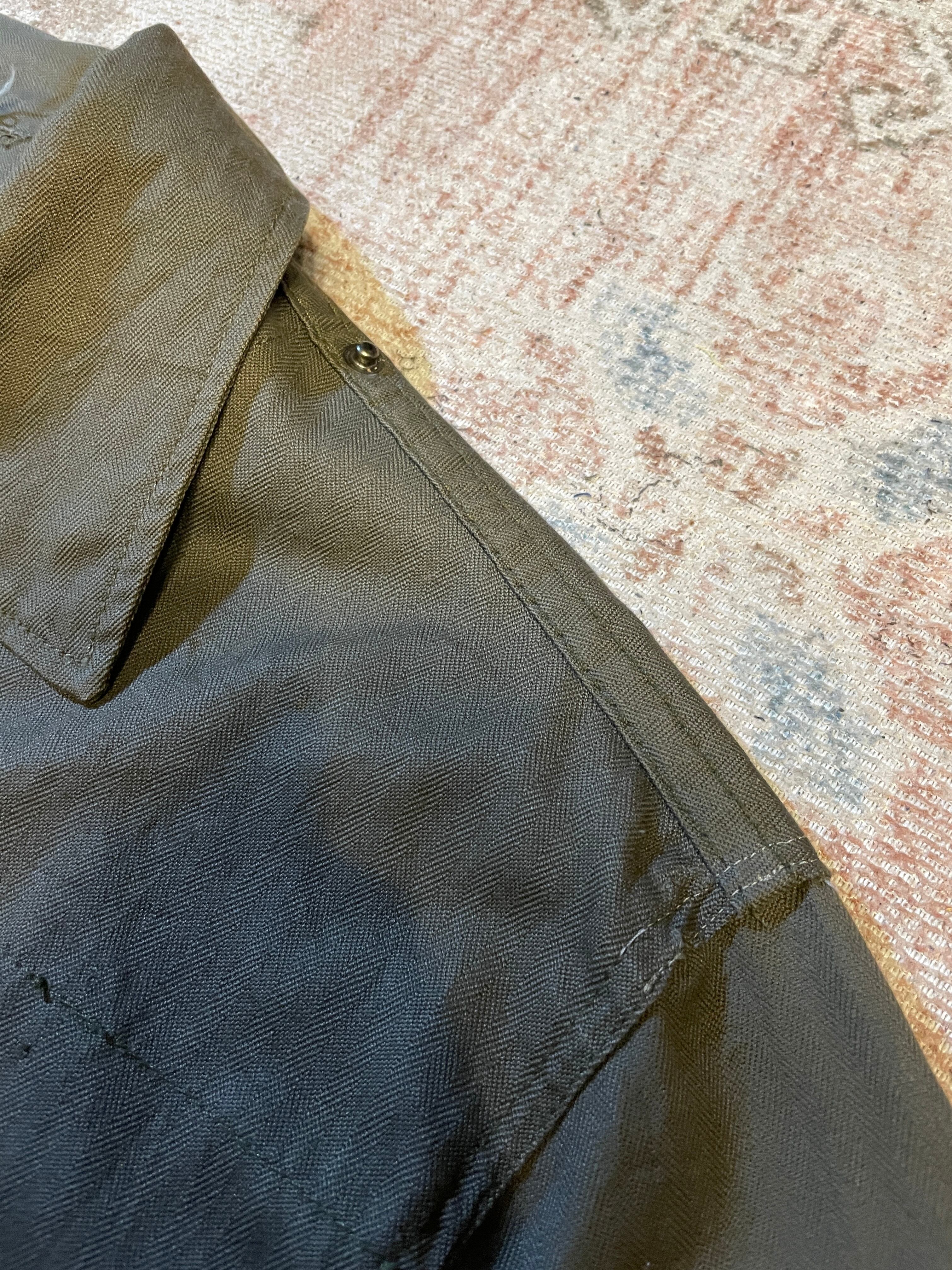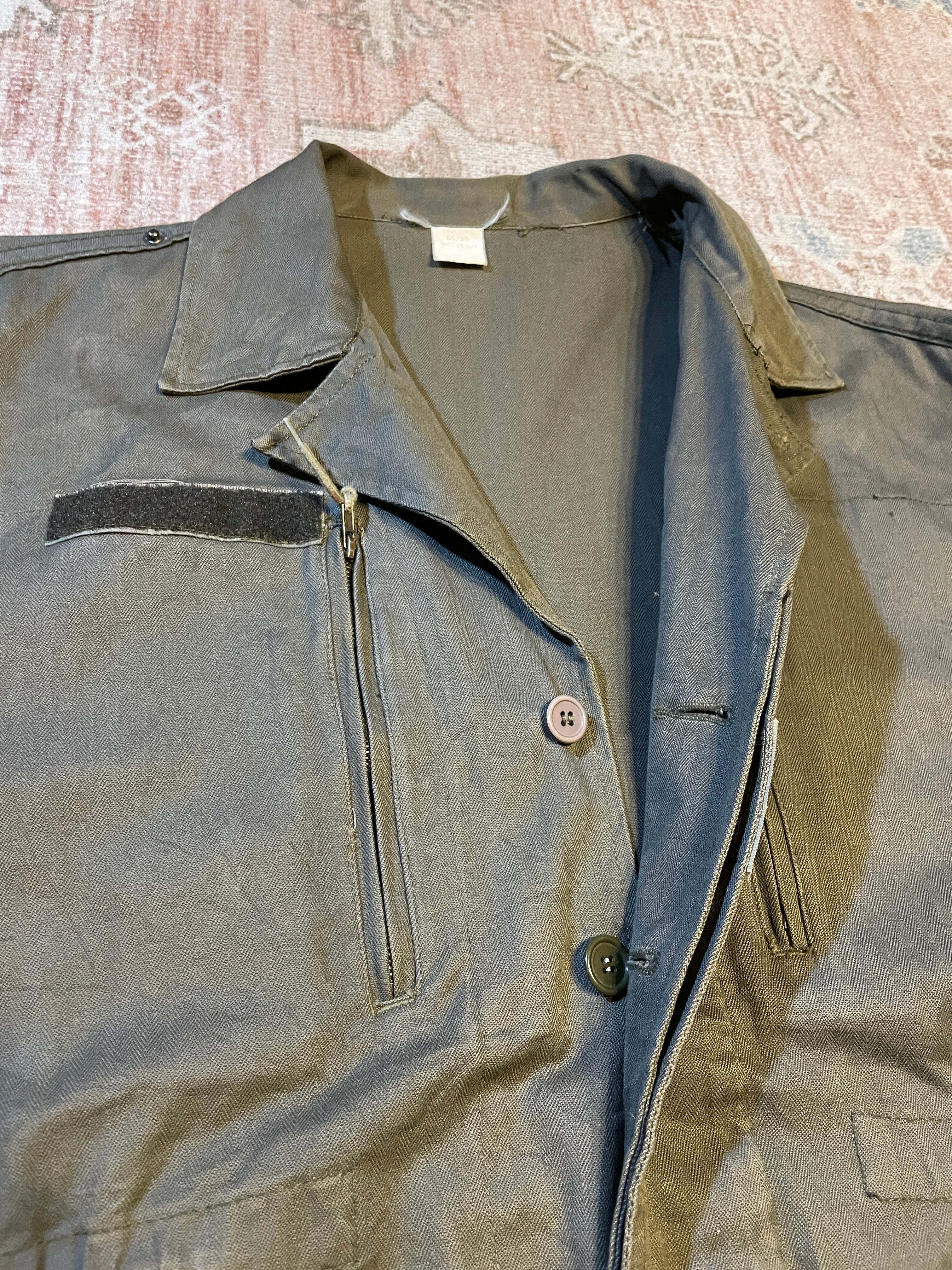 グレー寄りのカーキ色、ヘリンボーン生地を使用したユーロ系の民間ものになります。